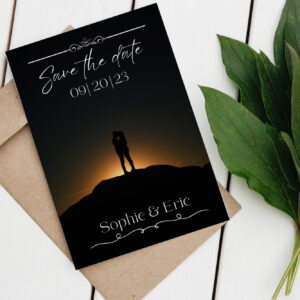 This floral background design from pikisuperstar on Freepik showcases a more fun and whimsical card that still feels appropriate for a wedding invitation. This design uses a thicker, cursive font for the displayed names, but utilizes a sans serif font for the rest of the card’s information. This also makes use of a horizontal orientation if you’re wanting to fit longer names and more information for your wedding invitation!