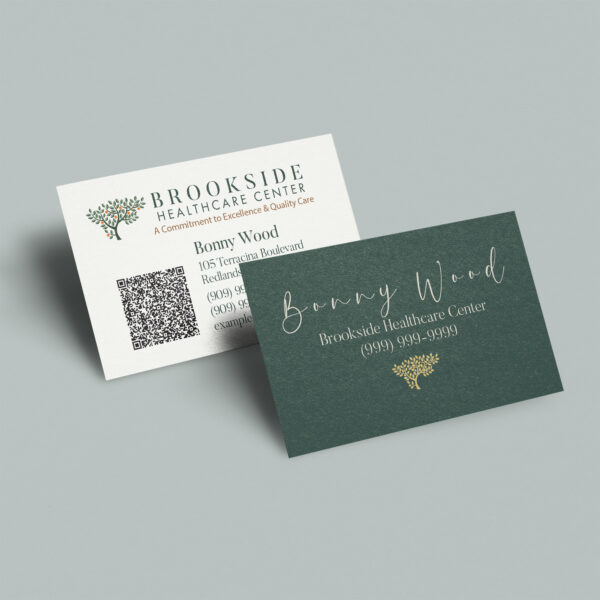 The back side of the card displays a detailed list of contact information, with room for an office number, personal number, and business email. This is displayed alongside a QR code that allows you to share and upload your listed contact information right into someone’s phone.